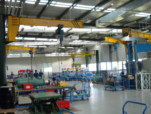 立柱式旋臂吊在旋轉(zhuǎn)范圍內(nèi)產(chǎn)生扇形工作面內(nèi),可有效的進(jìn)行工件的吊卸工作。室內(nèi)室外多種應(yīng)用場(chǎng)合均可使用,即使在凈空高度很小的室內(nèi)同樣能提供大的提升高度。立柱可用化學(xué)膨脹螺栓直接安裝,也可以使用混凝土預(yù)埋地腳螺栓安裝